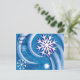 This design features assorted snowflakes swirling around in the wind. A blue backround was added. A layer of snow was added for flair. Send this postcard from anywhere you travel that has winter weather. Customize with all your own information. This is a colourful postcard and tells a story.