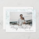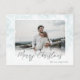 Modern, simple and elegant Merry Christmas One Photo Holiday Postcard with a snowflakes overlay. Icy blue marble background with white snowflakes and the same on the back. Easily personalize this Christmas card with your own photo and the text.