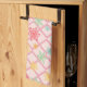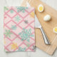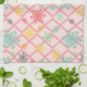 Snowflakes on a pink background with trellis kitchen towel