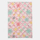 A pink background with darker pink trellis is the backdrop for snowflakes! Yellow, red, green, teal and black snowflakes. A beautiful towel that will work hard for you in the kitchen as a kitchen towel or as a decorative piece.