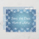 White and blue snowflakes on a blue twinkling stars and snowy background Wedding Save the date Postcard. There are matching items such as postage, sticker, label, magnet. Just check my store.