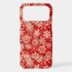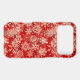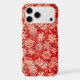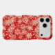 Snowflakes pattern. Seamless pattern with fluffy white snowflakes on a red background.