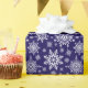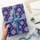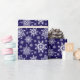 White snowflakes on Dark Blue wrapping paper. A seamless pattern of snowflakes in different designs and shapes make this timeless, classic and traditional wrapping paper. A elegant winter design, minimalist and simple. Snowflakes in an illustration fitting for the Holiday season, festive events and Christmas.