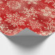 Snowflakes pattern. Seamless pattern with fluffy white snowflakes on a red background.