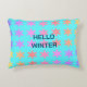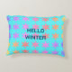 Snowflakes Patterns Hello Winter Typography Blue Accent Pillow