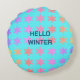 Snowflakes Patterns Hello Winter Typography Blue Round Pillow