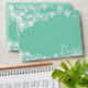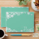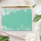 Snowflakes Peace holiday envelopes, a perfect match to our Snowflakes Peace holiday photo card! Pretty white snowflakes on a teal background and white fancy text that reads Peace.