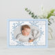 Share your joy for the arrival of your winter baby with this tender snowflake photo birth announcement. (<a href="https://www.freepik.com/free-photo/cute-sleeping-baby_3390177.htm">Designed by Freepik</a>. <a href='https://www.freepik.com/free-vector/beautiful-merry-christmas-party-poster_3363409.htm'>Designed by Harryarts</a>). <br/><br/>The card is easy to customize with your wording, font and font colour.<br/><br/>Not exactly what you're looking for? All our products can be custom designed to meet your needs at no extra charge.<br/><br/>Simply contact us at askcottonlamb@gmail.com.<br/><br/>Coordinating products available: Just ask us!