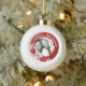 Personalized Holiday ornament with modern design featuring winter white snowflakes on red and personalized round photo. A beautiful Christmas tree ornament for your family or a keepsake for your first Christmas together!