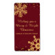 Des flocons d'or contre un arrière - plan rouge foncé. Un arc-en-ciel de petits points de bokeh et d'étoiles dorées bordent le haut et le bas. Les filigranes tordus ajoutent de la texture. Personnalisez ces étiquettes de vin de Noël avec un message personnel et des noms. Ces étiquettes s'adaptent le mieux sur les flacons de demi-taille 375ml. Un étiquette plus petit du même design est disponible pour les bouteilles de 750 ml de taille réelle.