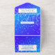 Snowflakes, Snow, blue, Winter Wonderland Wedding All in One Invitation. Tri-fold elegant, chic, unique, modern wedding invitations. Customize with your details. Order in time to avoid a disappointment.