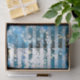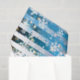 Beautiful winter themed tissue paper design featuring snowflakes, sparkles and lights on a blue striped background.
