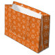 Sacoche cadeau de Noël avec flocons de neige cristallins blancs contre un arrière - plan orange brûlé.