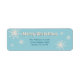 Merry Christmas return address labels created using hand drawn whimsical snowflakes on a blue background. Original art by Leslie Larson.