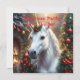 A majestic white unicorn stands gracefully beside a towering Christmas tree, its pristine coat gleaming like freshly fallen snow under a soft bokeh glow. Its mane cascade in silky waves, adorned with delicate holy, The unicorn’s horn spirals upward, shimmering faintly with a pearlescent glow, as if imbued with holiday magic.