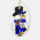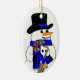 A meadow Snowman dressed in a top hat, blue scarf and mittens, is ready with his saxophone to play a tune.