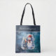 Snowman and Boy with Scarves Starry Night Monogram Tote Bag