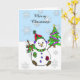 Snowman and Christmas Tree and snowflakes, puppy in gift box Christmas card. Personalize this card by adding your names on the inside of the card.