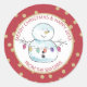 Festive red and gold "Merry Christmas and Happy 2018 " sticker featuring my lighthearted watercolor snowman holding a string of colourful holiday lights. Personalize text as preferred.