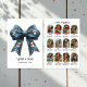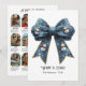 Celebrate your favourite memories with this festive flat holiday card featuring a charming blue bow adorned with snowmen and snowflakes. The front highlights “What a Year!” while the back includes a customizable year in review photo collage and captions. A cheerful way to share highlights and holiday wishes with family and friends.