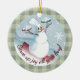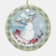 My 2011 Christmas holiday snowman chef rides a sled down hill with 2 platters of snowballs. Soft watercolor style with plaid background, a great ornament for a restaurant tree, or for your favorite chef, foodie, or snowman lover.