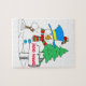 Snowman style poster on puzzles by local artist. Add text or names to puzzle.