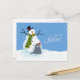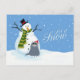 Carte postale de Noël sur le thème du chat mignon avec un tableau d'un bonhomme de neige aux bras de branches d'arbre et d'un chat gris portant un casquette rouge. Les mots "Let it Snow" apparaissent également dans la conception. Copyright © Lisa Marie Robinson. Tous droits réservés. Il est illégal d'utiliser ou de dupliquer ceci, ou l'une de nos images, sans autorisation écrite.