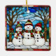 Snowman Family Faux Stained Glass Ceramic Ornament