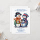 Snowman family party invitation in blue for a festive Holiday party.