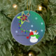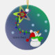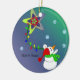 A sweet jolly snowman that's holding onto a string of lights from a star.