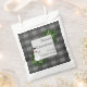 Add rustic charm to your holiday celebration with this festive Grey Snowman Buffalo Plaid Party Favour Bag. Featuring an adorable snowman in a classic top hat and scarf, set against bold buffalo plaid and gingham pattern accents. A cheerful Merry Christmas greeting is displayed in playful festive typography, with space to personalize it with your family name. Accented with seasonal holiday pine botanicals, this design brings warmth and whimsy to your gift giving.
