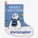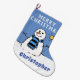 Christmas Stocking with Winter Snowman Design in a cartoon-style. Frosty the snowman is set against a blue background. Add your own details.