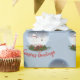 Holiday snowman with Christmas gold star and variety of Holiday phrases in snowflakes.
