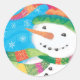 Snowman in Colourful Scarf and Stocking Hat Classic Round Sticker