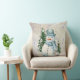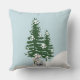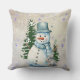 "Snowman in Falling Snow" with Rabbit and Trees Throw Pillow