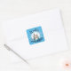 Cute snowman in a snow globe with snowflakes on aqua blue background.