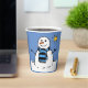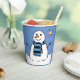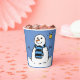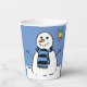 Cartoon illustration of a snowman on a sunny day. Paper cup for Christmas.