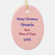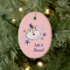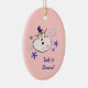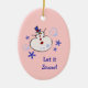 This is a wonderful kid's ornament to personalize and give to a daughter or granddaughter! The front features a cute snowman image complete with blue top hat and bright red buttons, surrounded by blue snowflakes. The custom text says "Let it snow!" The back is the same matching rose pink, with text that is also customizable. Make it say whatever you'd like! She will treasure this ornament forever!