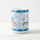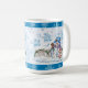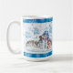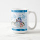Serve up some delicious hot cocoa with this cute holiday mug that features a colourful snowman and his little buddy wearing a Santa suit.