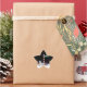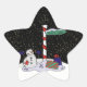 The snowman is dressed with blue gloves and buttons. The snowman is standing next to a white and red pole with a green sign that says "North Pole". The gifts are next to the pole. White snow is laying on the ground. The stickers are available with a white or black backround.