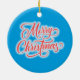 Snowman on Blue and Red Merry Christmas Photo Ceramic Ornament