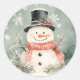 Snowman Snowflakes and Greenery Illustration Classic Round Sticker