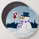 Snowman illustration in a Christmas scene with his own personal stocking pegged and hanging from a washing line.