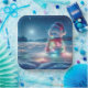 A snowman wrapped in colourful Christmas lights stands in a snowy field under a starry night sky
