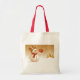These bags were super cute (I purchased 3). The material is more of a canvas look & feel. The colour of the bag is slightly off white, but the letters look exactly as pictured. I took 3 photos in different lighting. Would recommend! I liked how there was an option to choose the font and colour of the name. The words are legible and the colours are exactly as pictured.