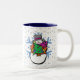 Snow is falling on this cute snowman holding a Christmas tree on snowman buttons, magnets, key chains, coffee mugs, travel mugs, beer steins and US Postage. Makes a great gift for friends, family and co-workers.