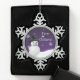 Ajoutez une touche de fantaisie à votre sapin de Noël cette saison de fêtes avec un ornement de flocon de neige pourpre Snowman Winter Scene. Le design ornemental présente un bonhomme de neige heureux dans une scène hivernale enneigée contre un arrière - plan violet orné de flocons de neige de couleur assortie. Autres cadeaux et objets de vacances disponibles avec ce design aussi.