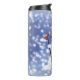 Happy snowman, thermal tumblers for warm drinks, hot Chocolate while playing outside in snow.