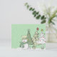 Cute snowman surrounded by a winter wonderland with snowy winter trees.