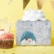 Snowman with sparkly blue stars on abstract silver sky. Hand sewn snowman from white sock and filled with grain, crochet dark cyan hat and scarf, sewn two orange button and glued eyes and mouth black plastic and glued nose from red pearl.